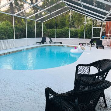 Spacious 4BR/3.5BA home in the heart of High Springs! Walk to shops & dining, or relax by the private pool with screened outdoor bar. Features 2 king beds, 1 queen, 1 bunk room, queen air mattress, full kitchen, sunroom, WiFi, A/C, washer/dryer, and free parking. Close to springs for swimming, kayaking & more. Great for families or groups
